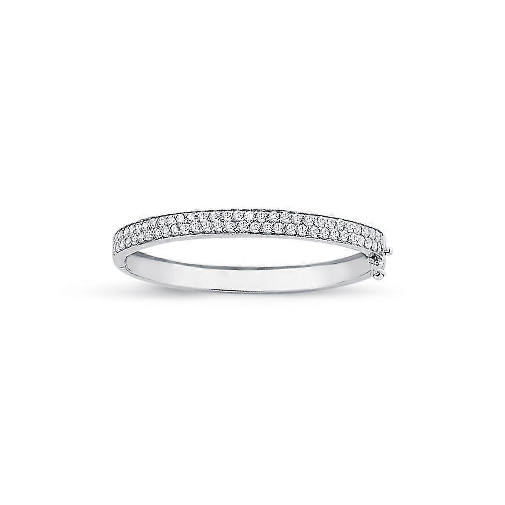 Jewelco London Girls Rhodium Plated Sterling Silver Round Cubic Zirconia Double Row Eternity Baby Bangle Bracelet 5mm