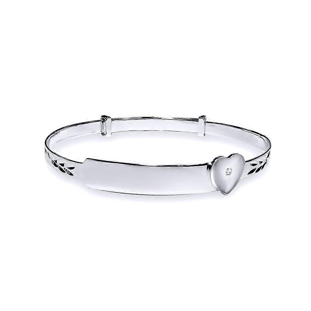 Jewelco London Girls Solid Sterling Silver Diamond Heart ID Expanding Baby Bangle Bracelet 3mm