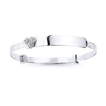 Jewelco London Girls Sterling Silver Cubic Zirconia Heart Expanding ID Baby Bangle Bracelet
