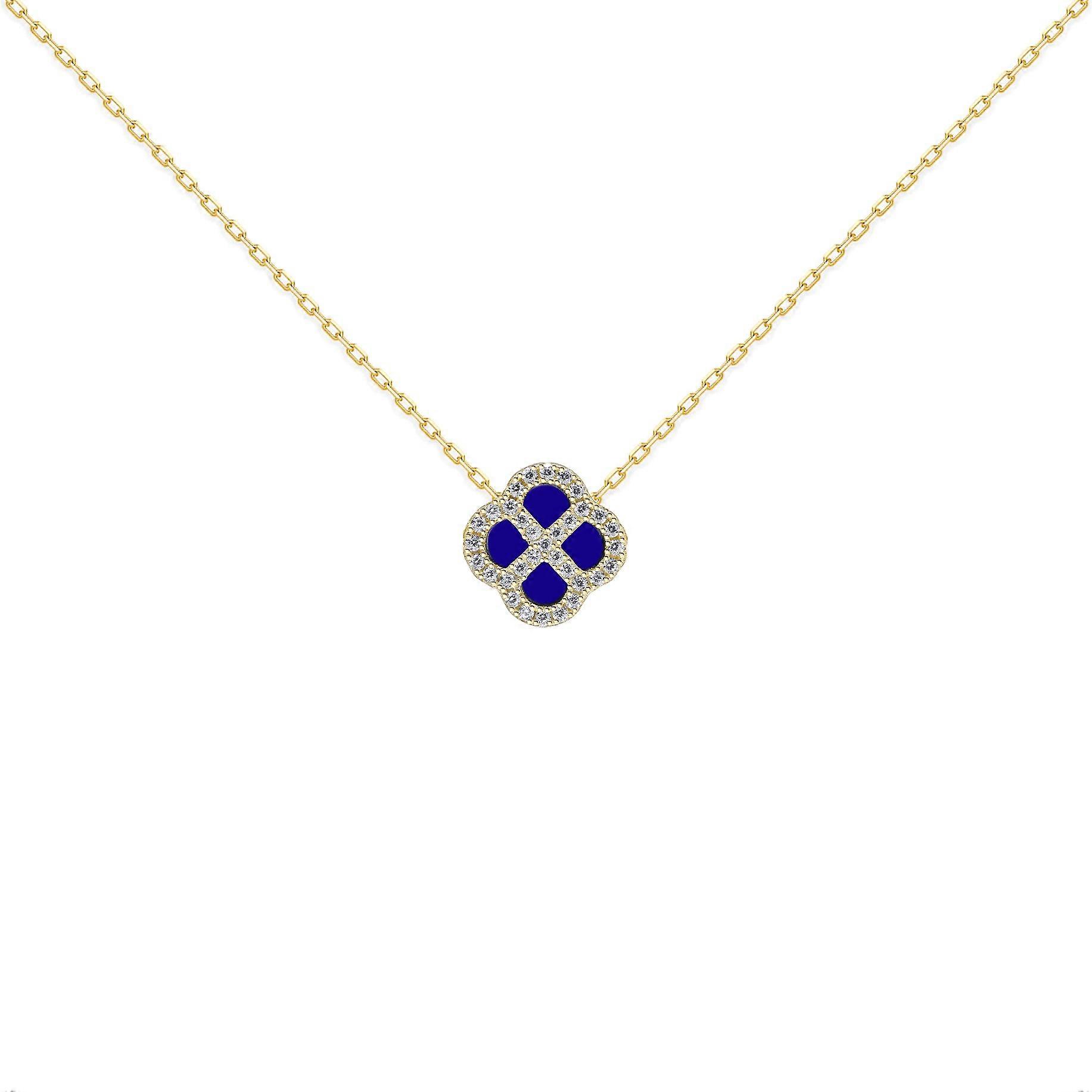 Jewelco London Gold-plated Sterling Silver CZ Blue Lapis Lazuli Clover Kiss Lucky Charm Necklace 16-18"