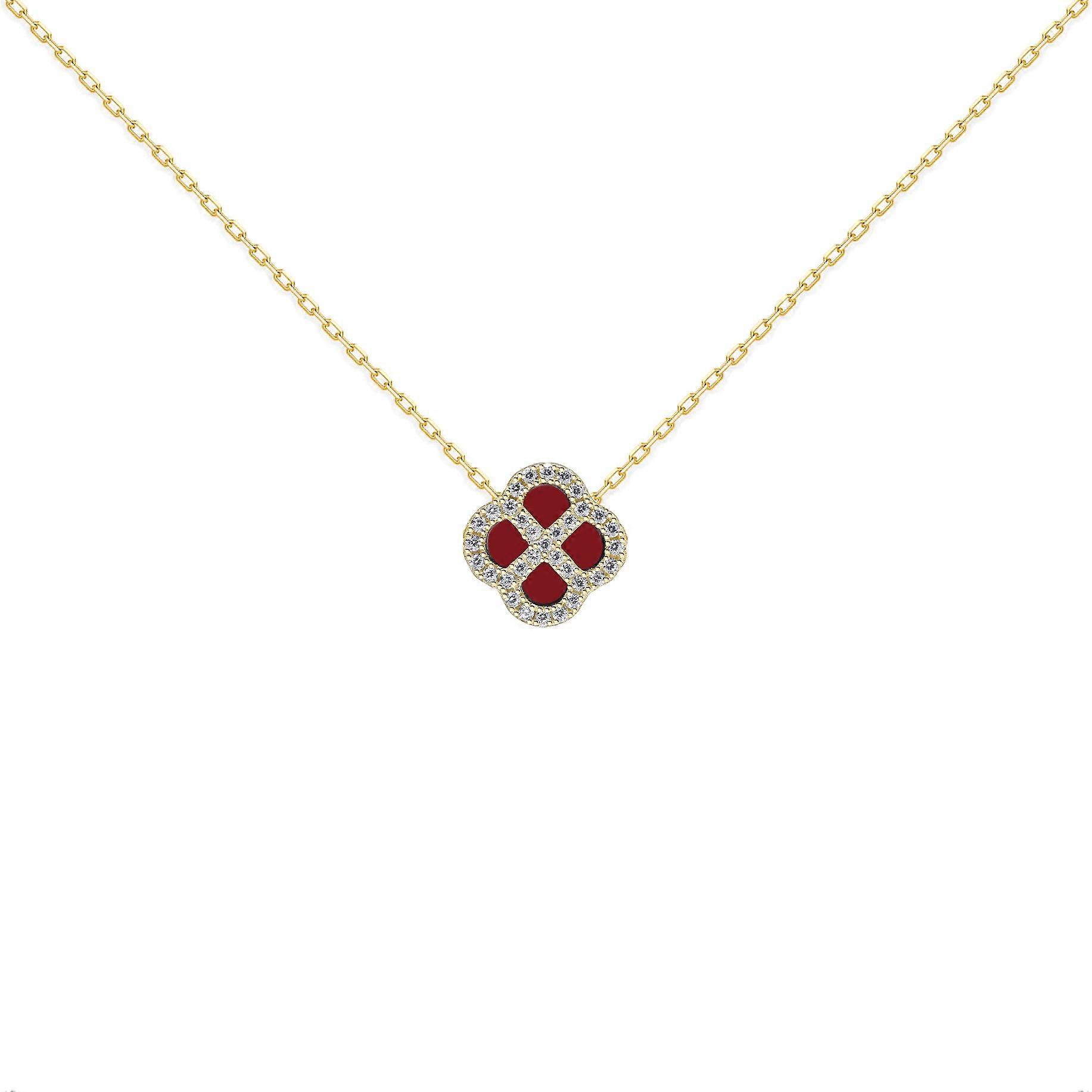 Jewelco London Gold-plated Sterling Silver CZ Red Agate Clover Kiss Lucky Charm Necklace 16-18"