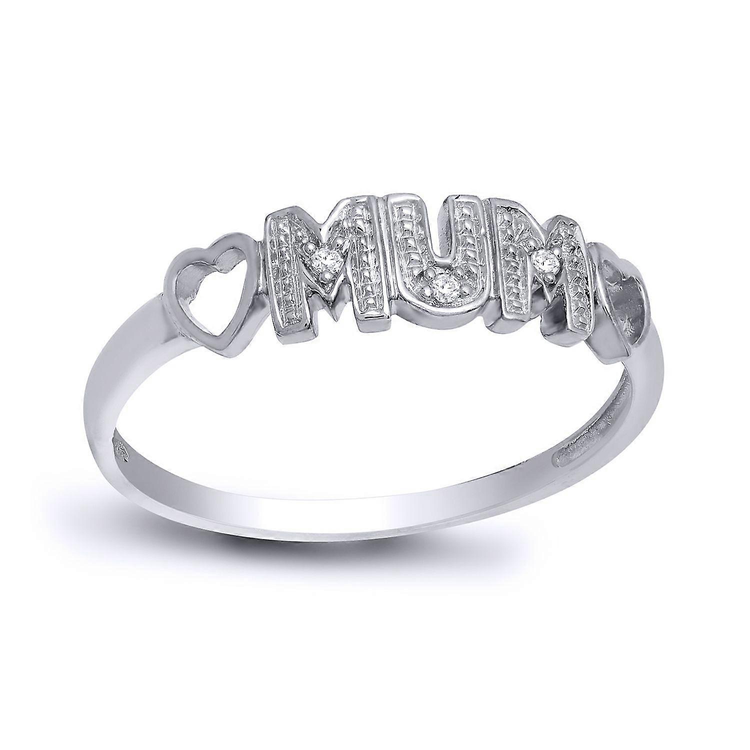 Jewelco London Hallmarked 925 Sterling Silver Pave Set Round H I2 0.02ct Diamond Love Heart MUM Ring 4.5mm