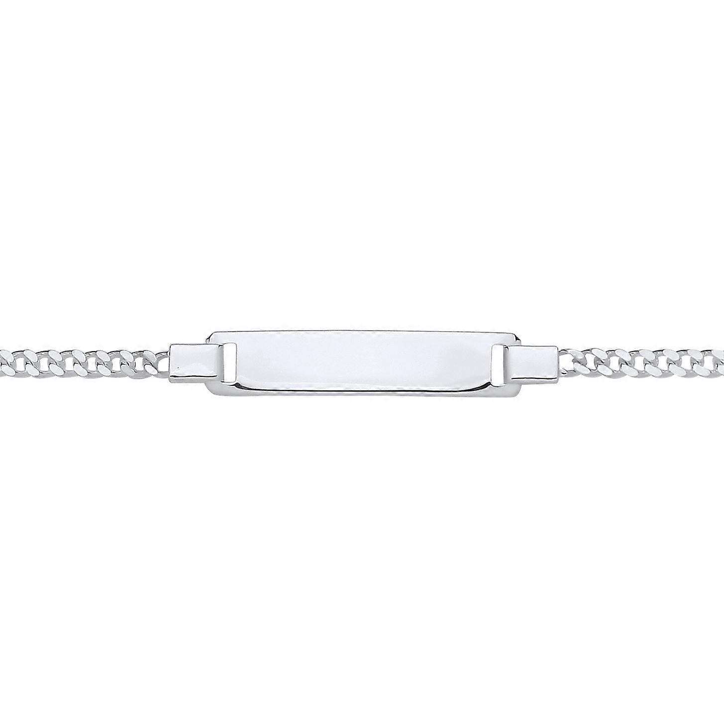 Jewelco London Kids Rhodium Plated Sterling Silver Classic Curb Identity ID Bar Bracelet 6 inch