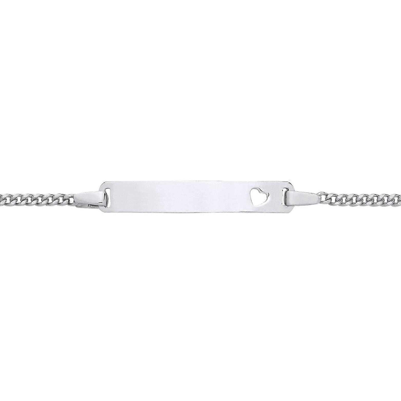 Jewelco London Kids Rhodium Plated Sterling Silver Classic Curb Love Heart Identity ID Bar Bracelet 5 + 1 inch