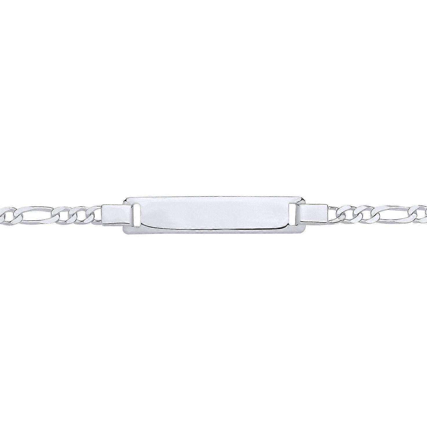 Jewelco London Kids Rhodium Plated Sterling Silver Classic Figaro Link Identity ID Bar Bracelet 6 inch