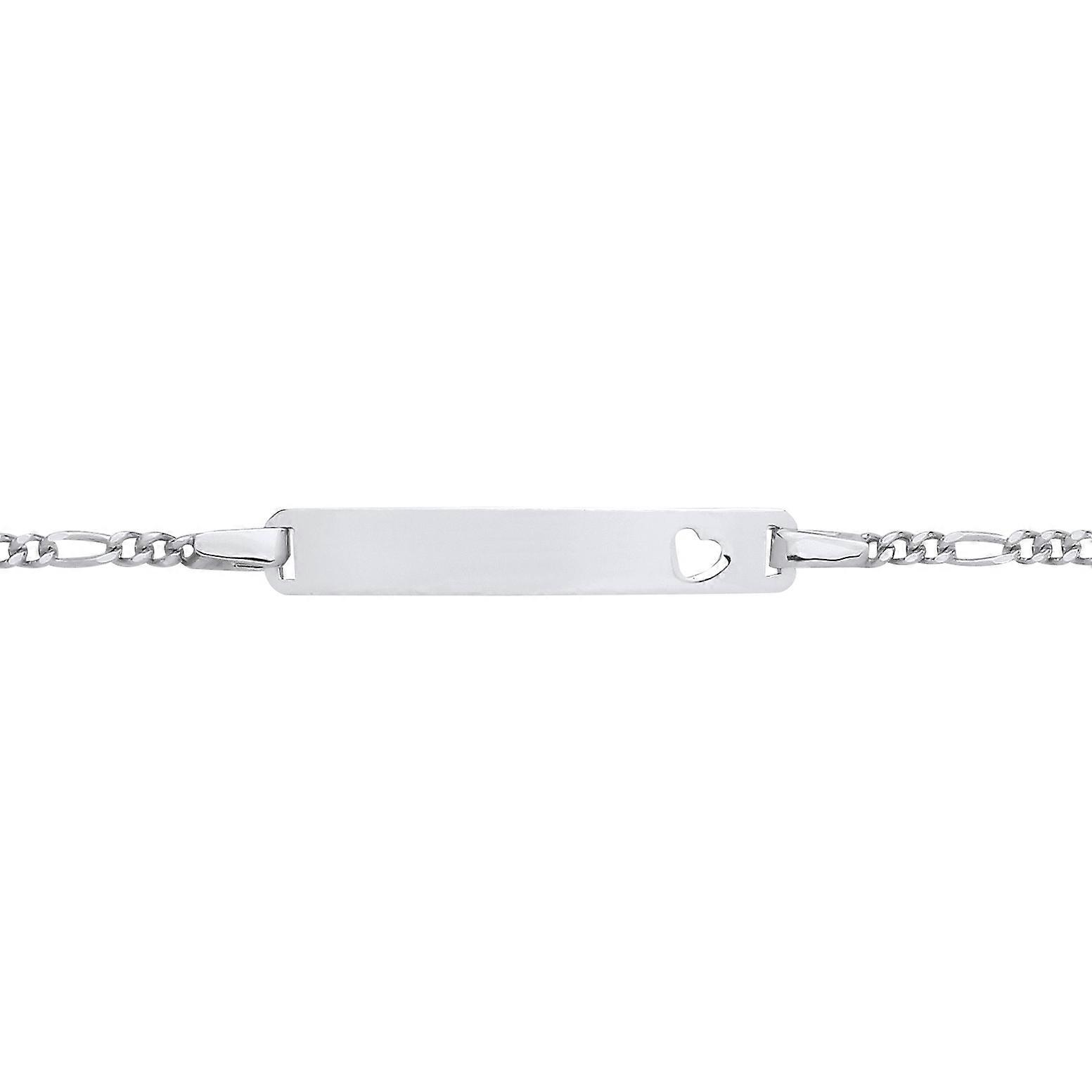 Jewelco London Kids Rhodium Plated Sterling Silver Classic Figaro Love Heart Identity ID Bar Bracelet 5 + 1 inch