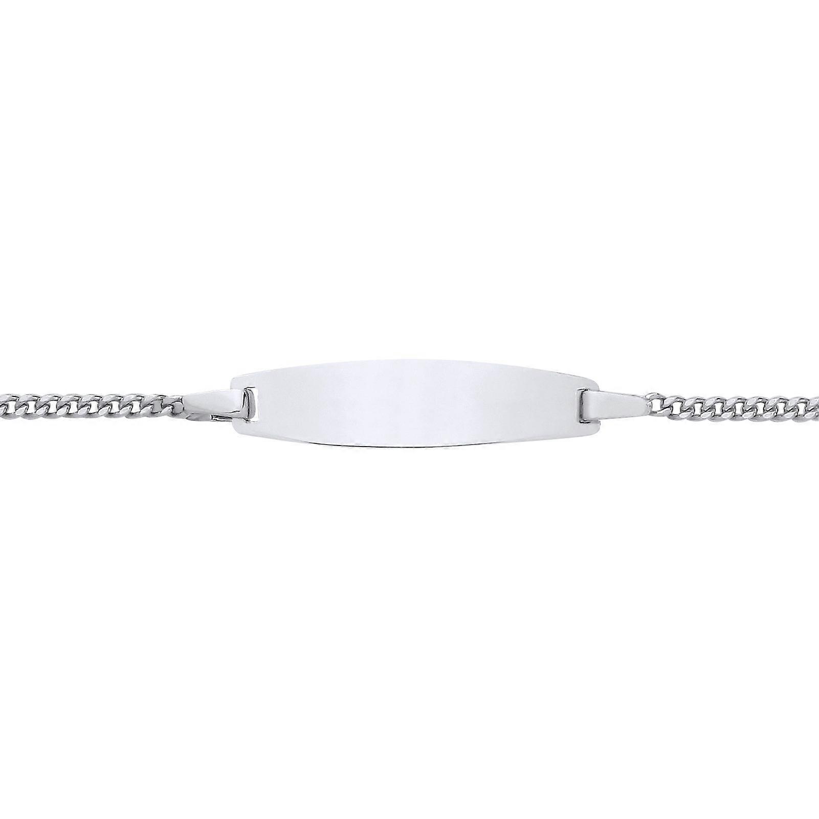 Jewelco London Kids Rhodium Plated Sterling Silver Curb Chain Oval Bar Identity ID Bracelet 5 + 1 inch