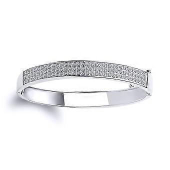 Jewelco London Kids Rhodium Plated Sterling Silver CZ 3 Row Encrusted Eternity Baby Bangle Bracelet 5mm