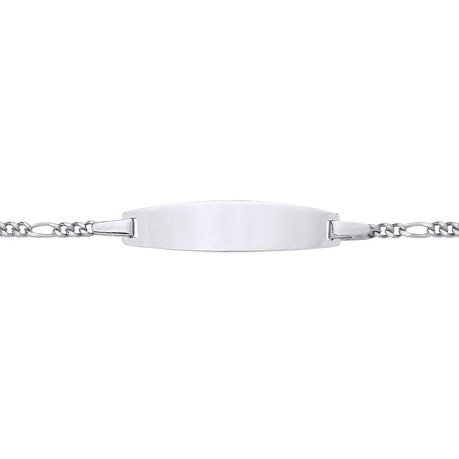 Jewelco London Kids Rhodium Plated Sterling Silver Figaro Chain Oval Bar Identity ID Bracelet 5 + 1 inch