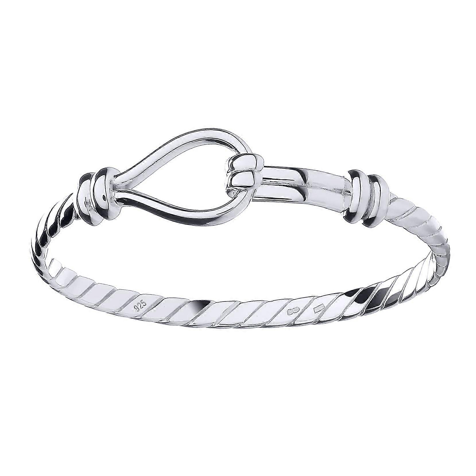 Jewelco London Kids Rhodium Plated Sterling Silver Rope Stirrup Hook 4mm Bangle Bracelet, 5"