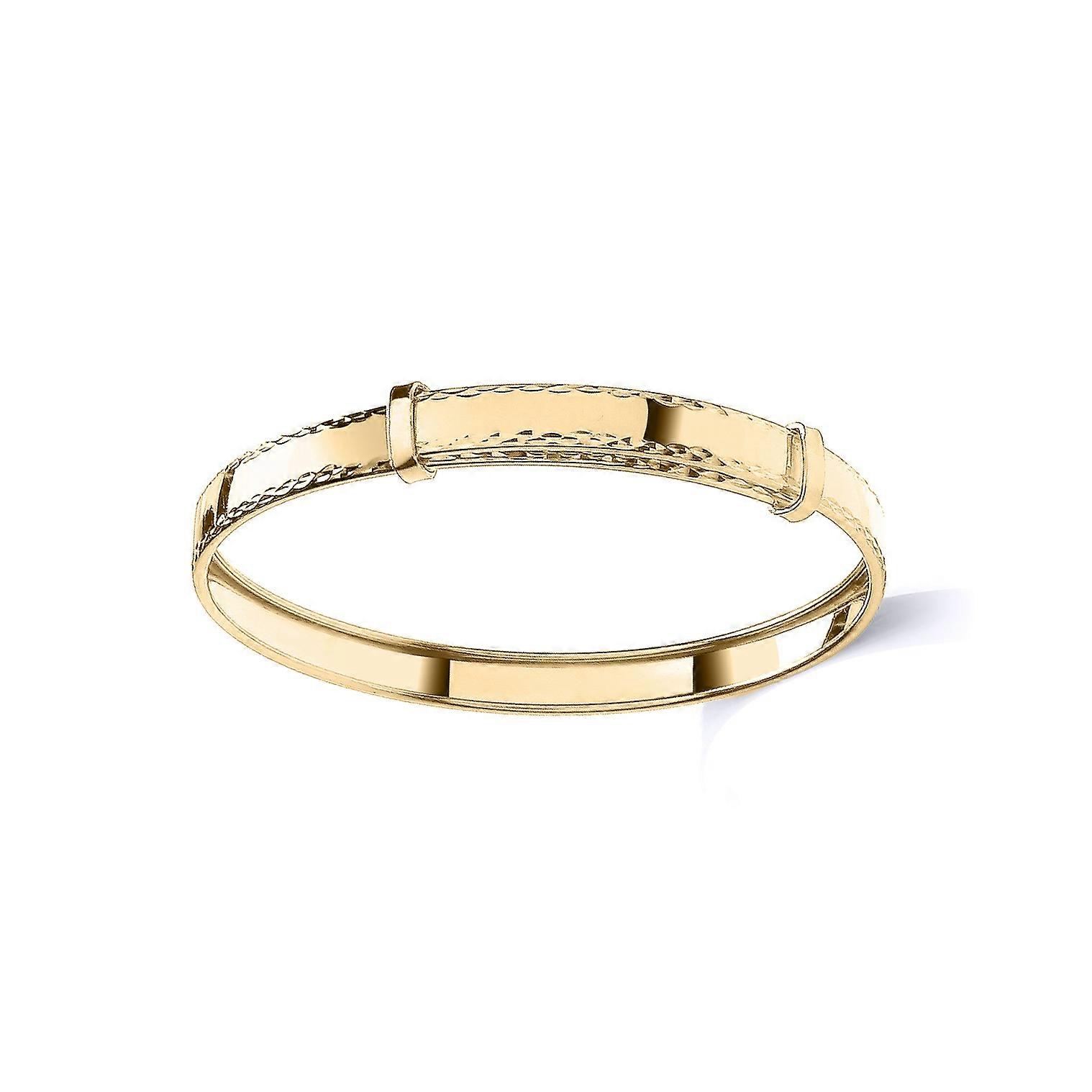 Jewelco London Kids Solid 9ct Yellow Gold Diamond-cut Edge Polished Channel Expandable 4mm Baby Bangle Bracelet