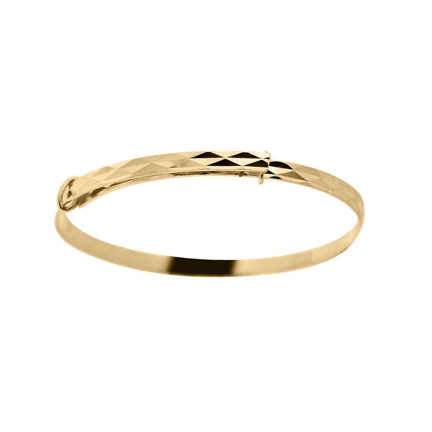 Jewelco London Kids Solid 9ct Yellow Gold Diamond-cut Engine Turned Argyle Pattern Expandable 2mm Baby Bangle Bracelet