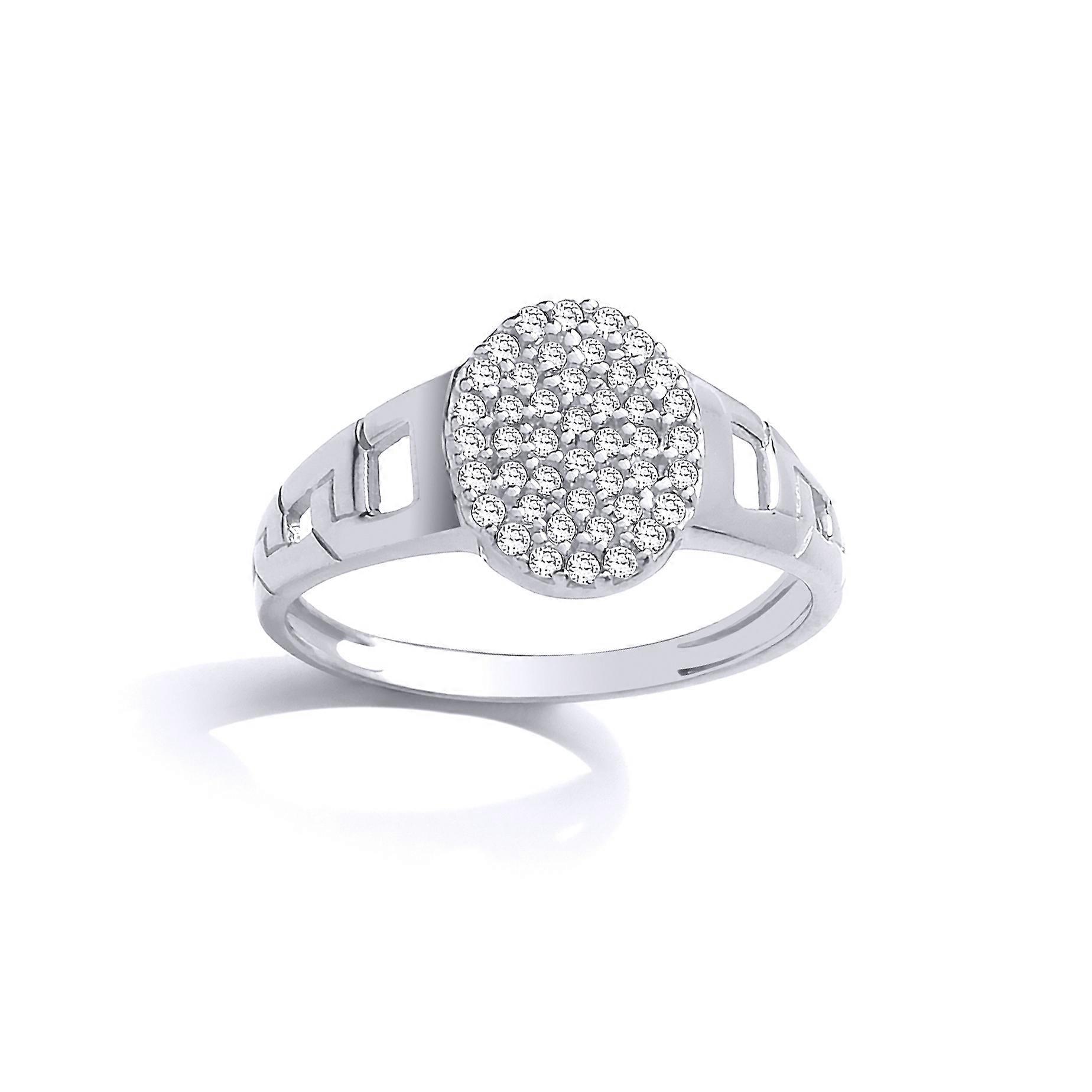 Jewelco London Kids Sterling Silver Cubic Zirconia Encrusted Oval Curb Signet Ring