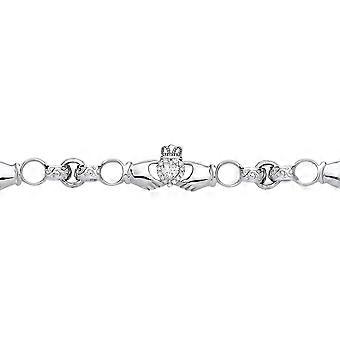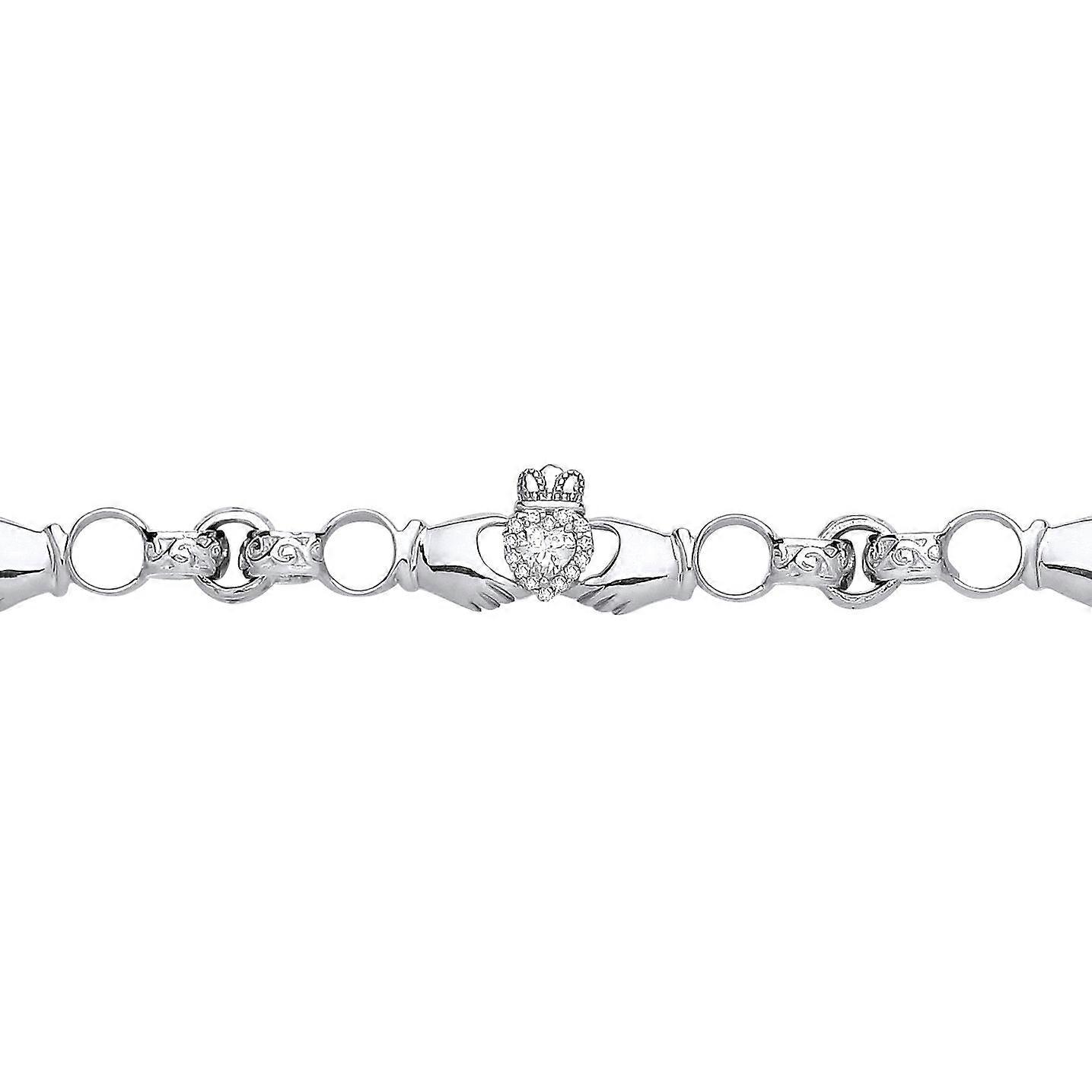 Jewelco London Kids Sterling Silver Heart CZ Triple Claddagh Engraved Belcher Charm Bracelet 4mm 5.5 inch