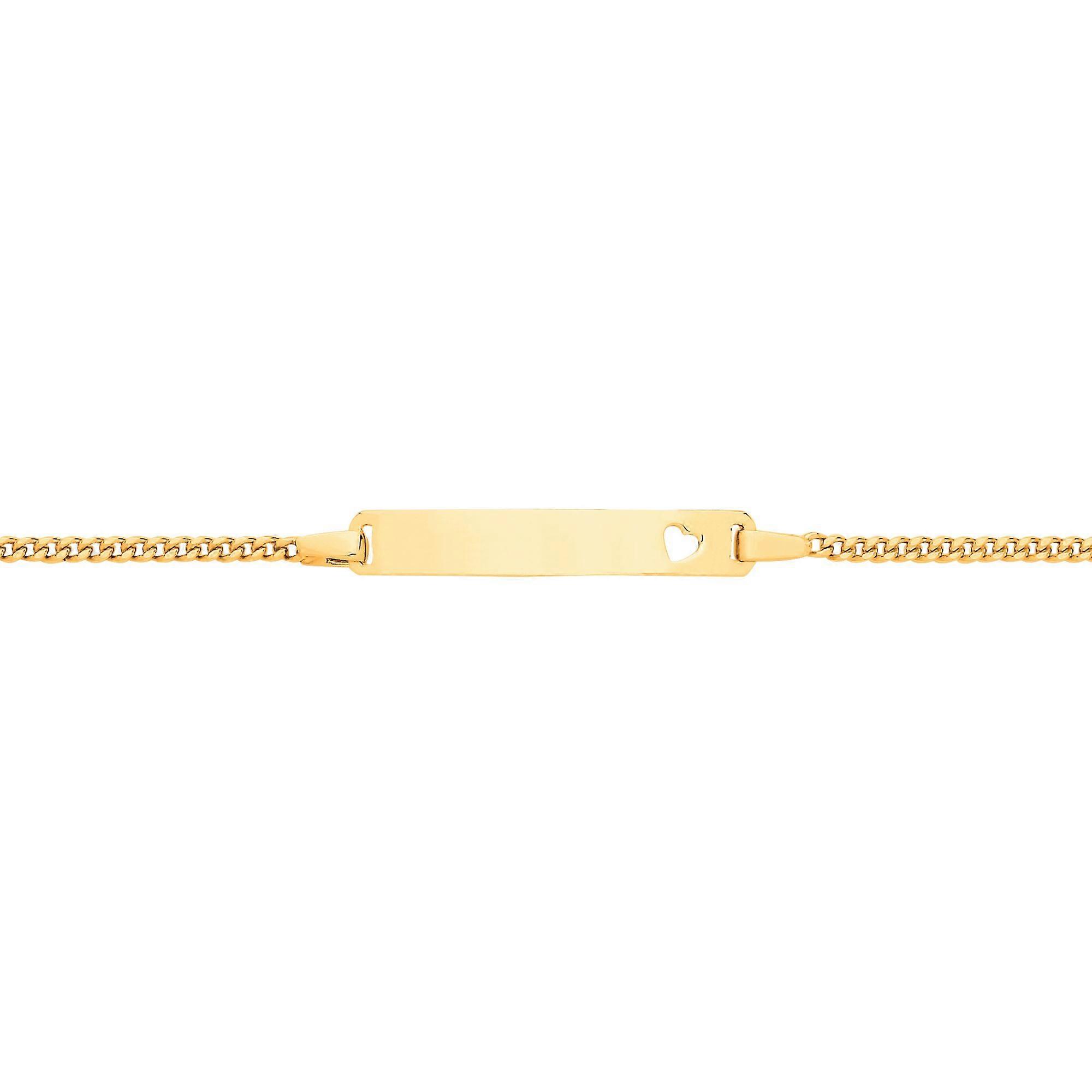 Jewelco London Kids Yellow 9ct Gold Classic Curb Love Heart Identity ID Bar Bracelet 5 + 1 inch