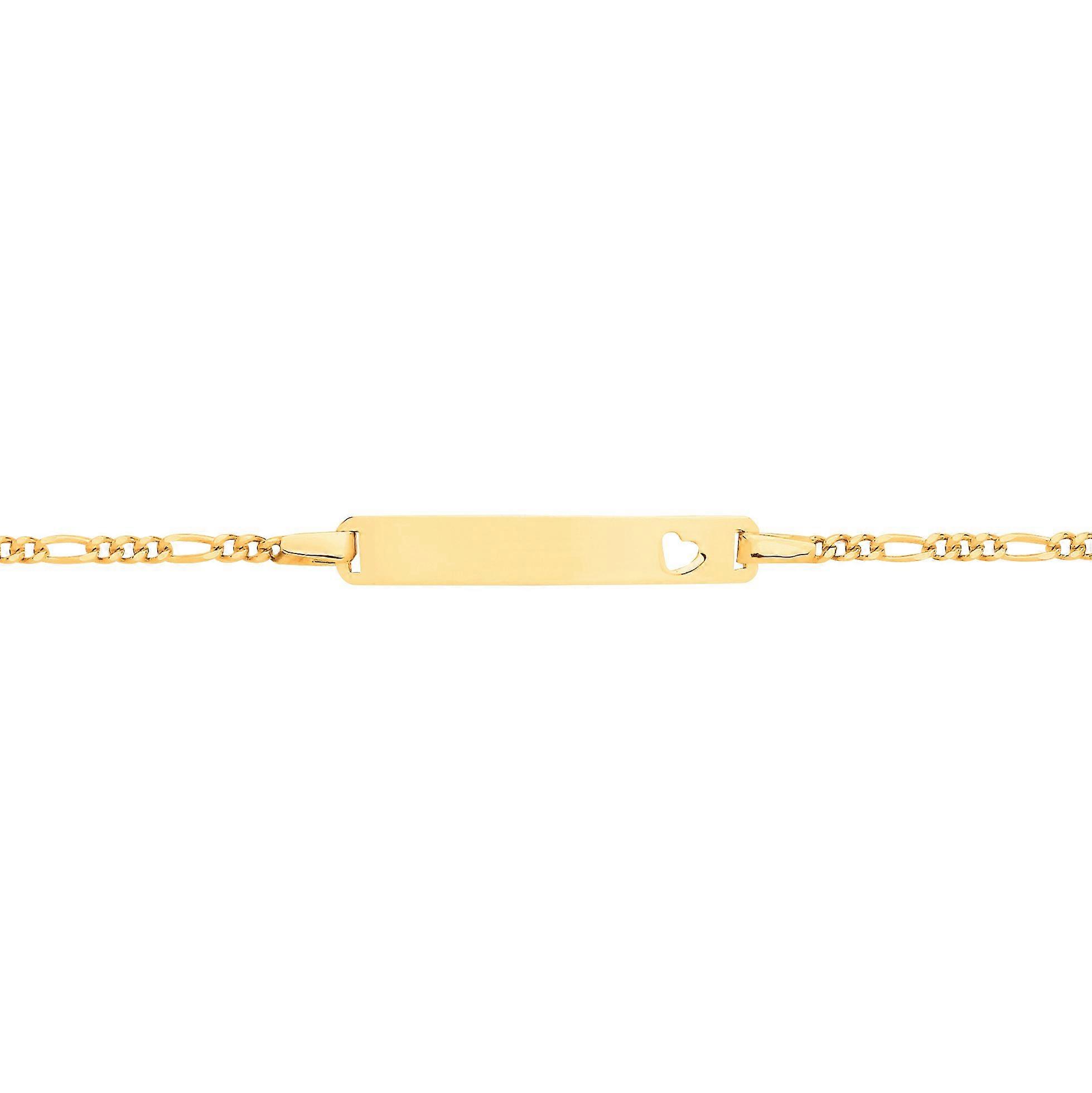 Jewelco London Kids Yellow 9ct Gold Classic Figaro Love Heart Identity ID Bar Bracelet 5 + 1 inch