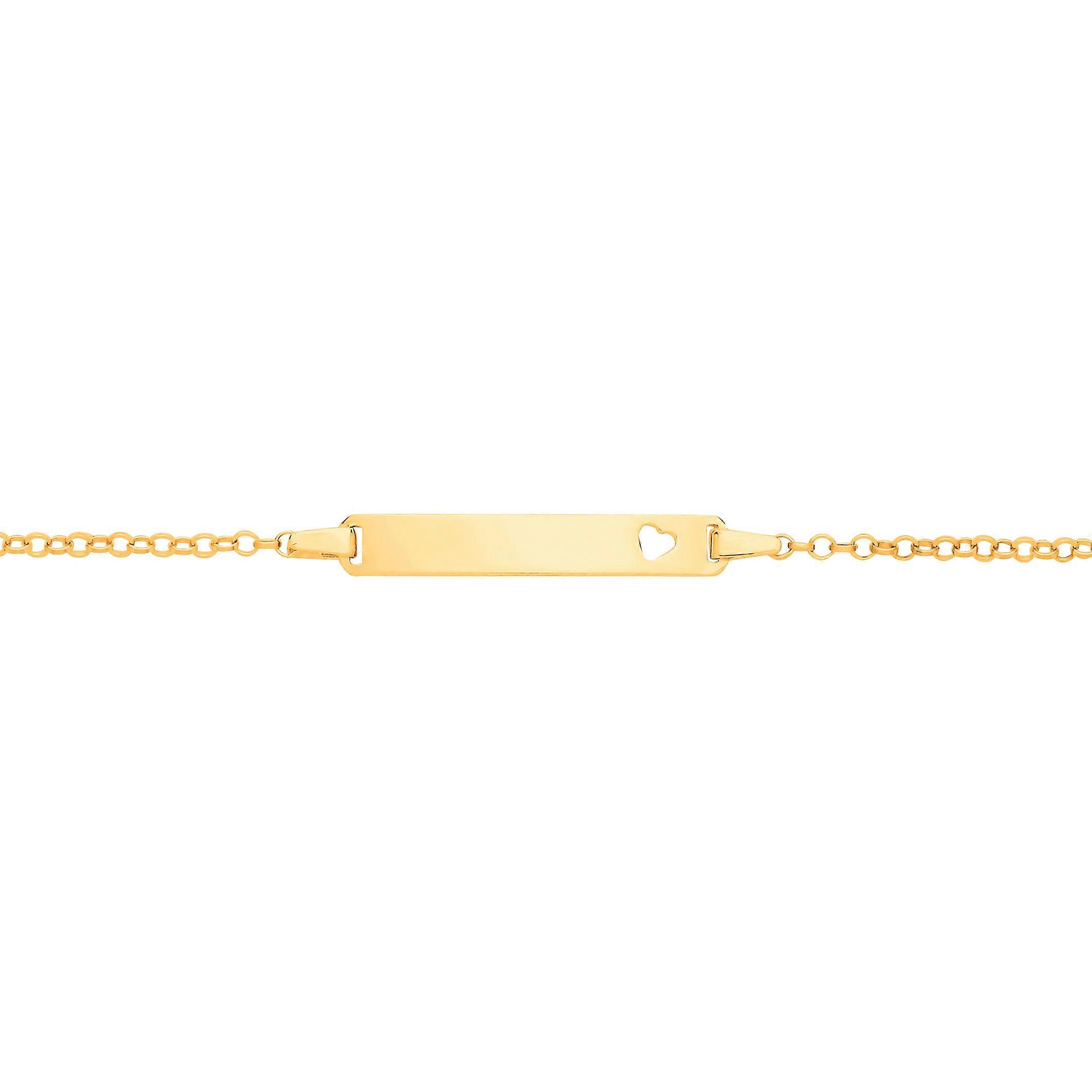 Jewelco London Kids Yellow 9ct Gold Round Belcher Love Heart Identity ID Bar Bracelet 5 + 1 inch