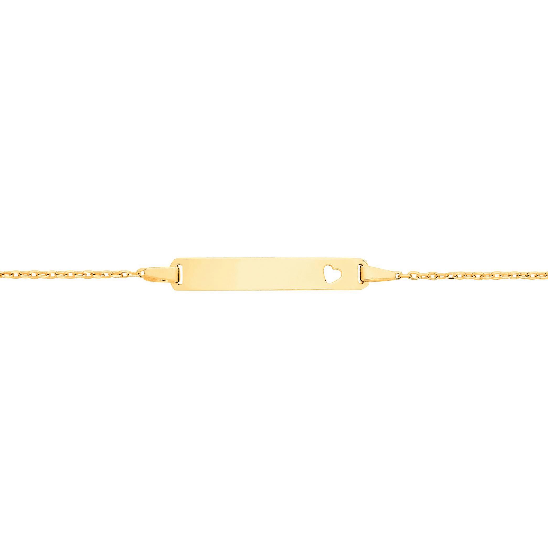 Jewelco London Kids Yellow 9ct Gold Trace Chain Love Heart Identity ID Bar Bracelet 5 + 1 inch