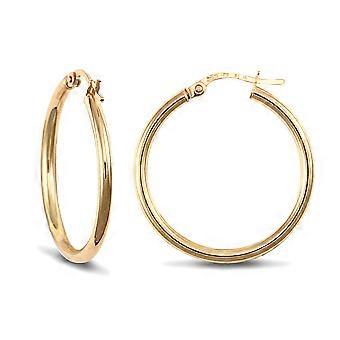 Jewelco London Ladies 14ct Yellow Gold Polished Round Tube 2mm Hoop Earrings 25mm