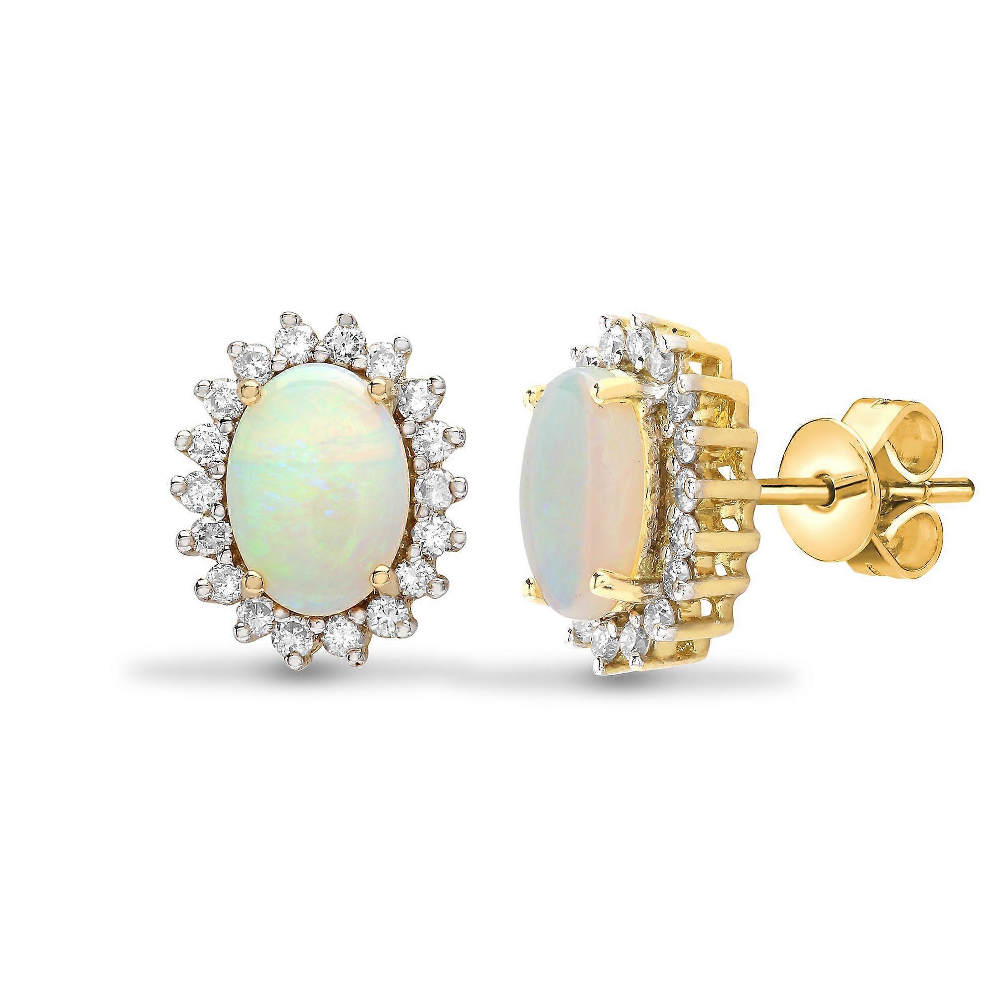 Jewelco London Ladies 18ct Yellow Gold Cluster Set Round G SI 0.3ct Diamond and Oval Opal Royal Cluster Stud Earrings