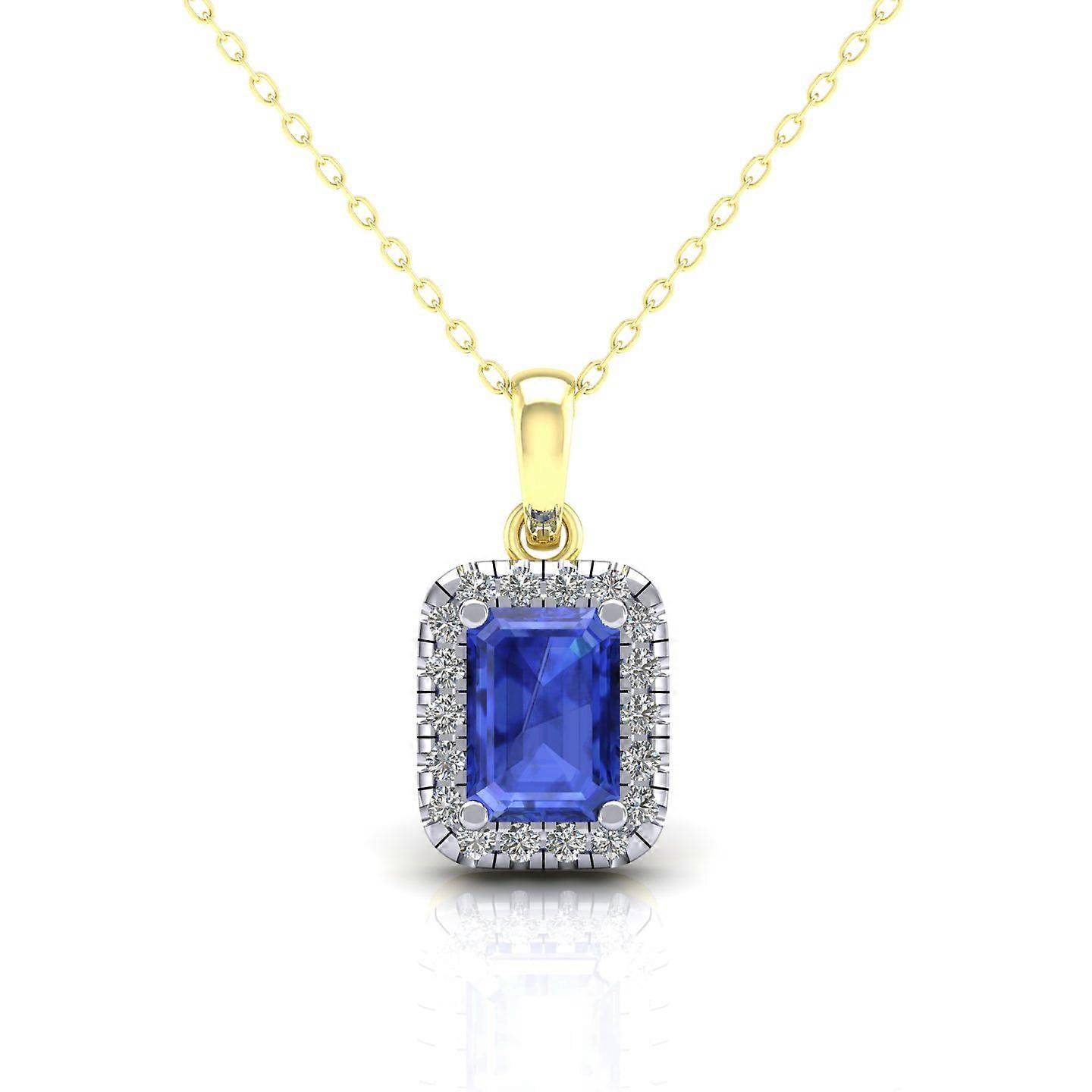 Jewelco London Ladies 2-Colour 9ct Gold Blue Emerald CZ Solitaire Halo Cluster Pendant Necklace 16-20 inch