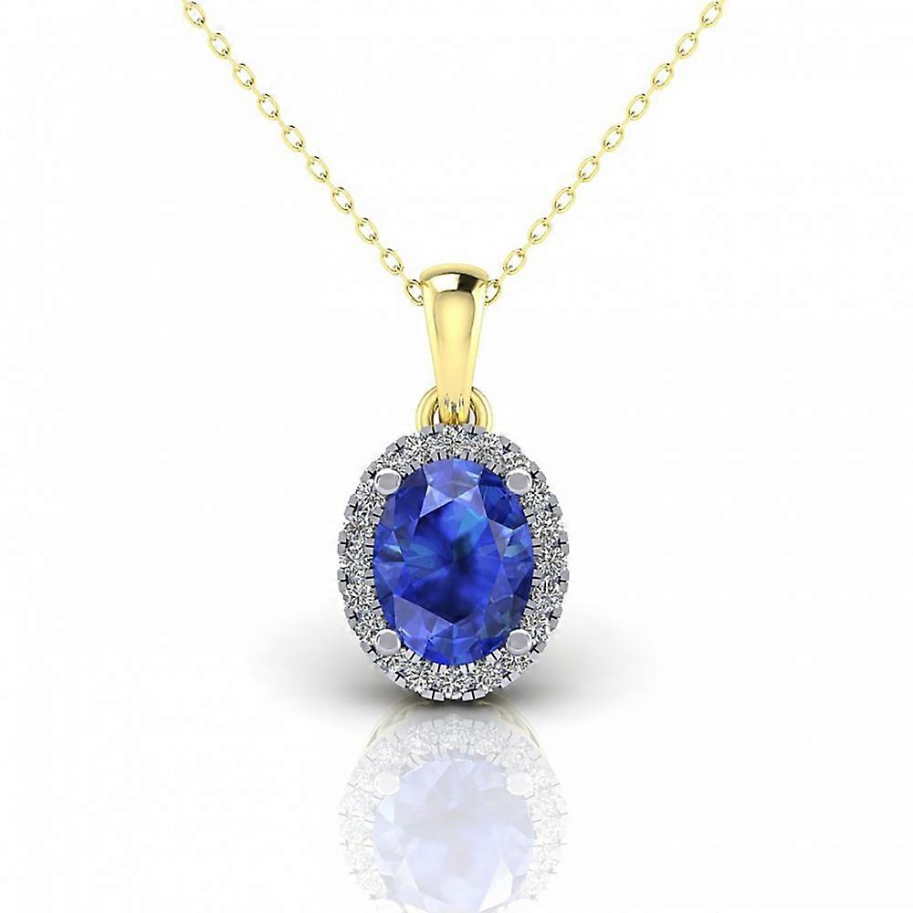 Jewelco London Ladies 2-Colour 9ct Gold Blue Oval CZ Solitaire Halo Cluster Pendant Necklace 16-20 inch