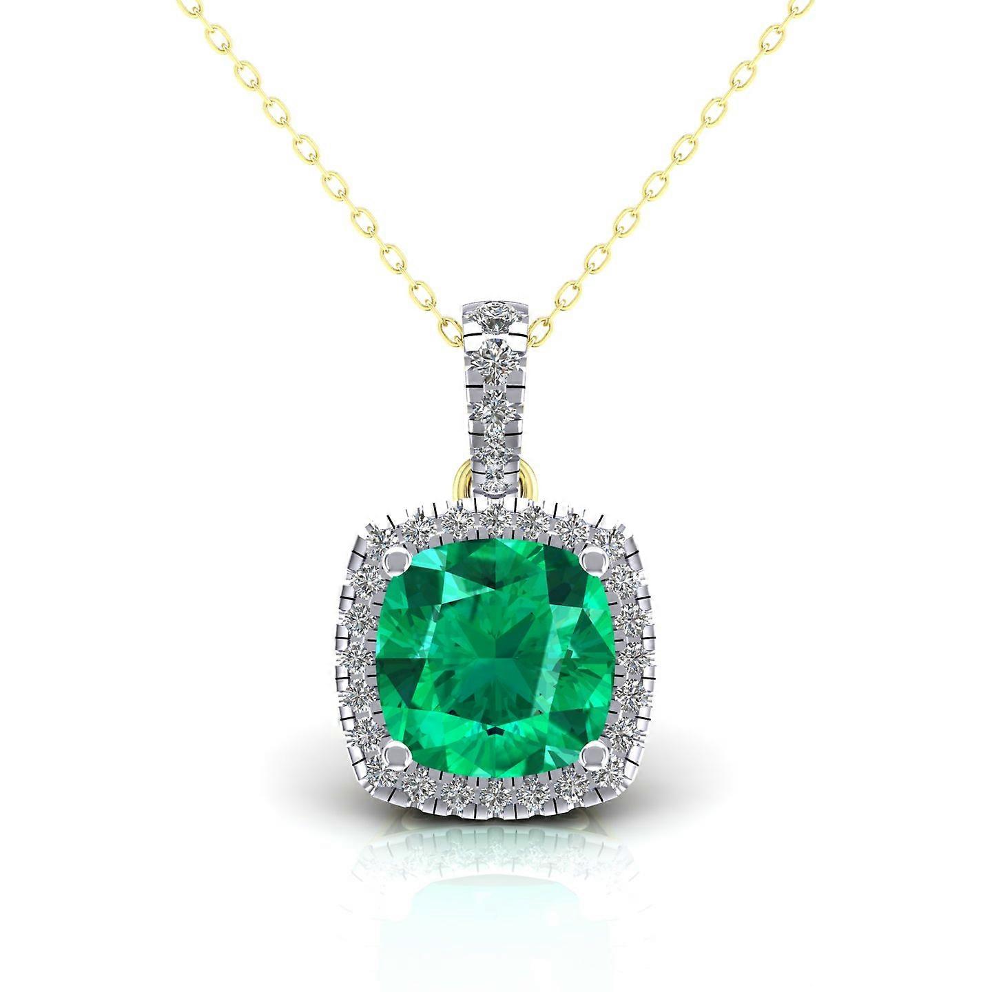 Jewelco London Ladies 2-Colour 9ct Gold Green Cushion CZ Solitaire Halo Cluster Pendant Necklace 16-20 inch