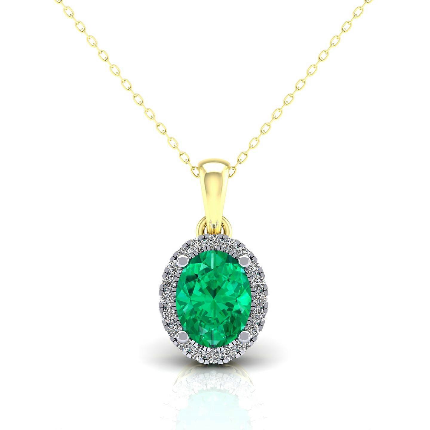 Jewelco London Ladies 2-Colour 9ct Gold Green Oval CZ Solitaire Halo Cluster Pendant Necklace 16-20 inch