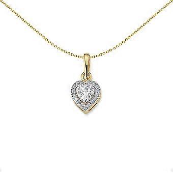 Jewelco London Ladies 2-Colour 9ct Gold Heart CZ Love Heart Solitaire Halo Pendant Necklace 16-20 inch