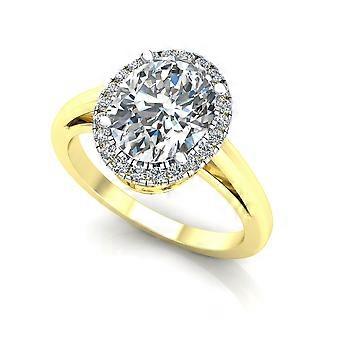 Jewelco London Ladies 2-Colour 9ct Gold Oval CZ Royal Cluster Oval Halo Engagement Ring
