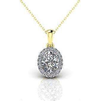 Jewelco London Ladies 2-Colour 9ct Gold Oval CZ Solitaire Halo Cluster Pendant Necklace 16-20 inch