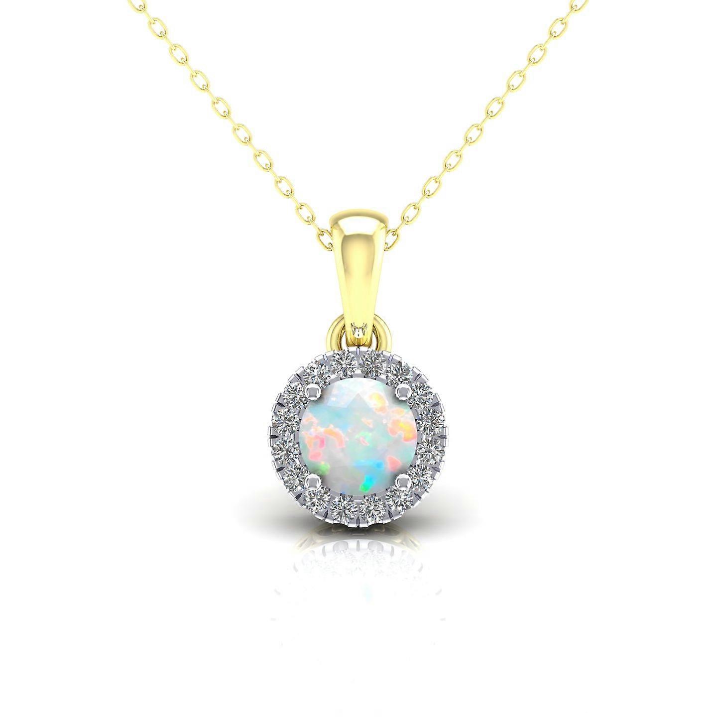 Jewelco London Ladies 2-Colour 9ct Gold Rainbow Opal CZ Solitaire Halo Cluster Pendant Necklace 16-20 inch