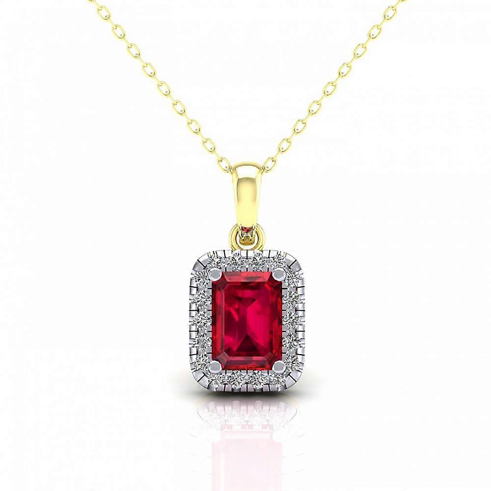 Jewelco London Ladies 2-Colour 9ct Gold Red Emerald CZ Solitaire Halo Cluster Pendant Necklace 16-20 inch