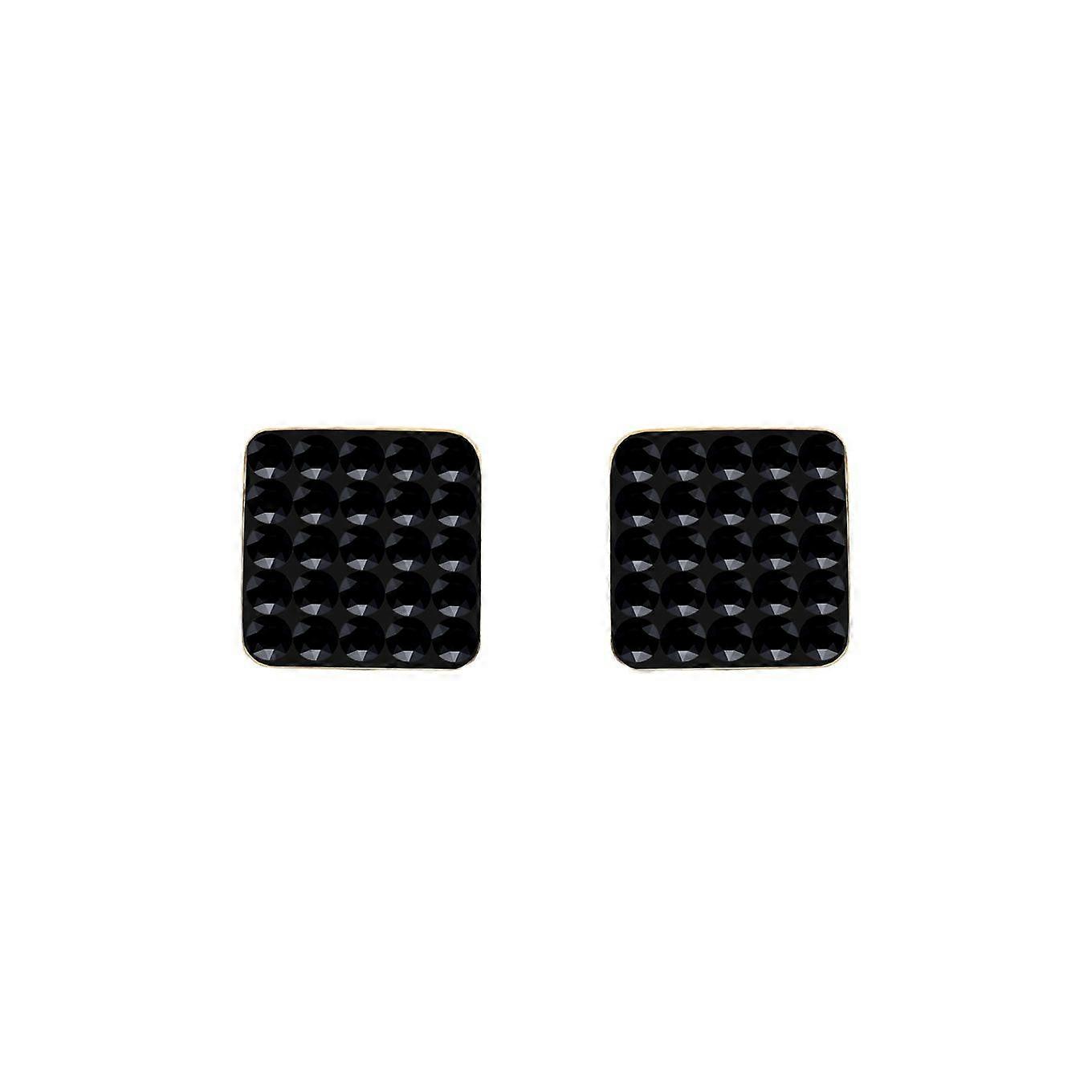 Jewelco London Ladies 9ct Gold Crystal Disco Square Stud Earrings Black 8mm