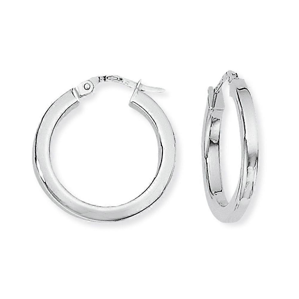 Jewelco London Ladies 9ct White Gold 2mm Gauge Square Tube Round Hoops Earrings - 20mm