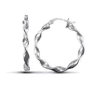 Jewelco London Ladies 9ct White Gold Candy Twist 3mm Hoop Earrings 25mm