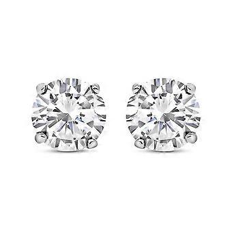 Jewelco London Ladies 9ct White Gold Cubic Zirconia 4 Claw Stud Earrings - 7mm