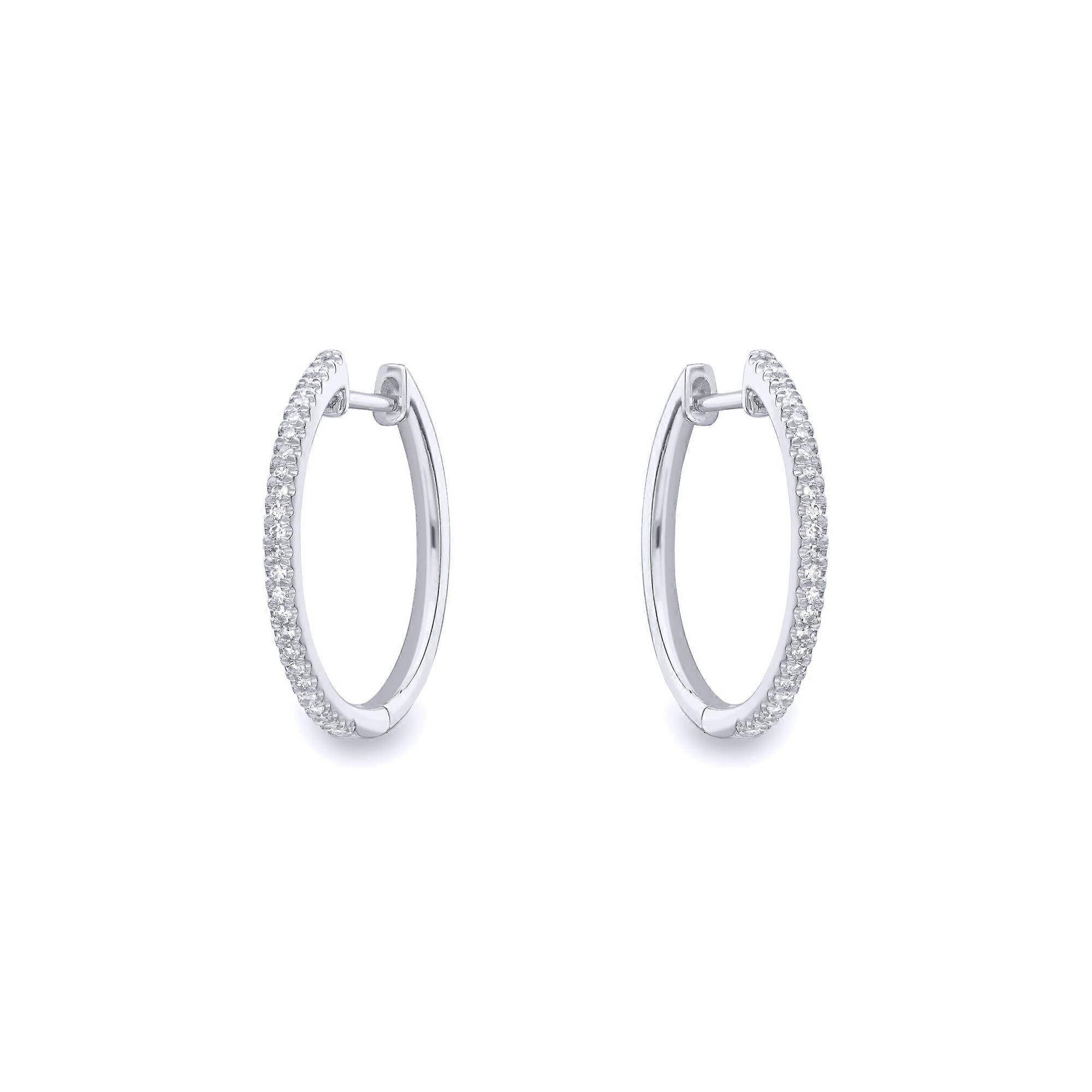 Jewelco London Ladies 9ct White Gold Diamond Eternity Huggie Hoop Drop Earrings 20mm
