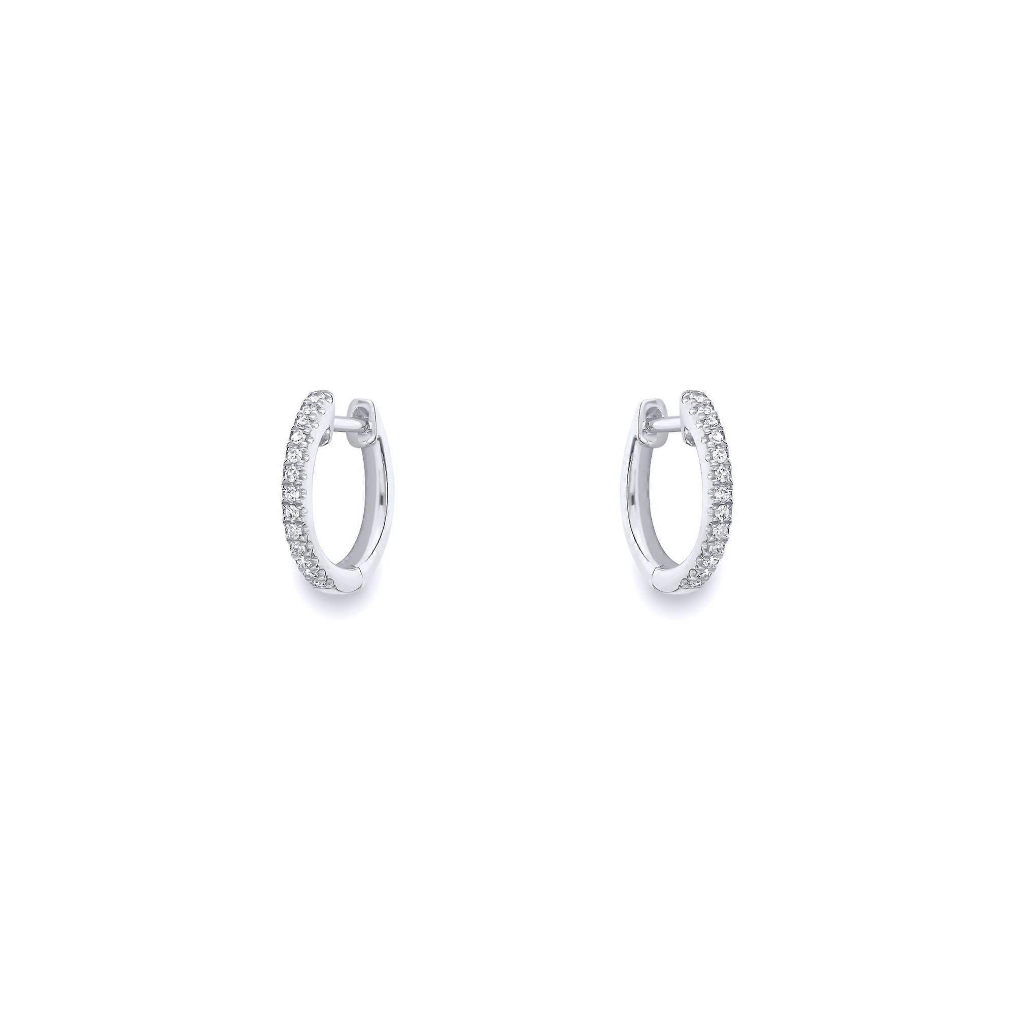 Jewelco London Ladies 9ct White Gold Diamond Eternity Huggie Hoop Earrings 10mm