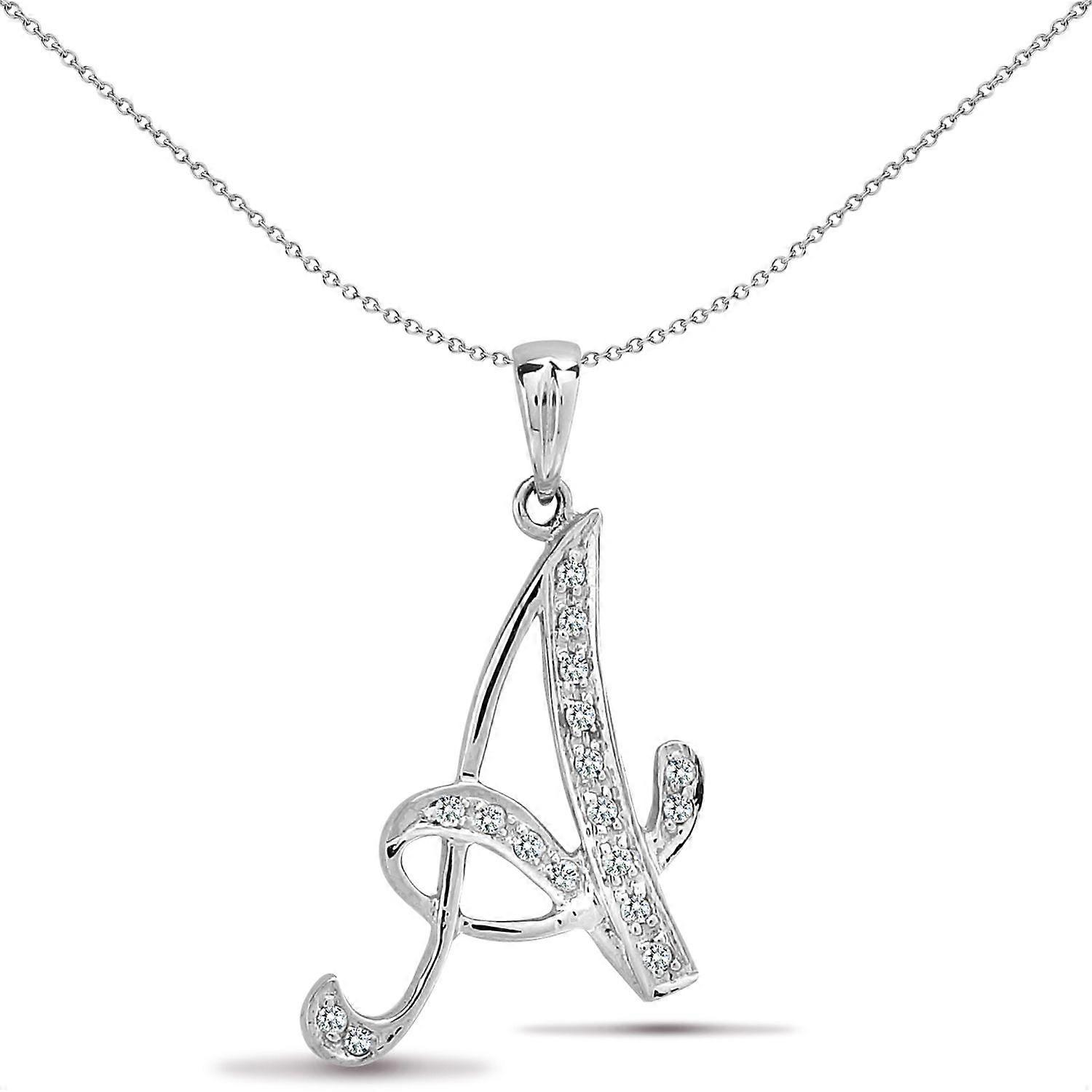 Jewelco London Ladies 9ct White Gold Pave Set Round G SI 0.1ct Diamond Identity Script Initial ID Charm Pendant Letter A