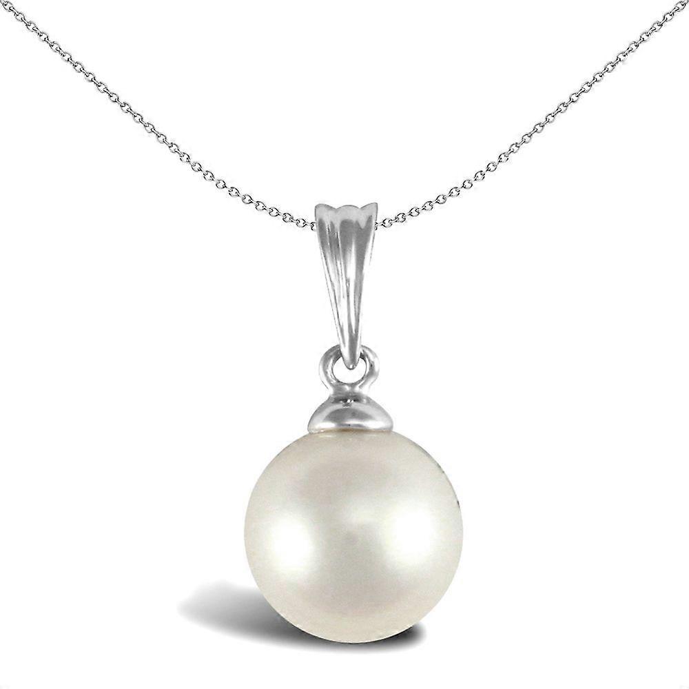 Jewelco London Ladies 9ct White Gold Seawater Cultured Akoya Pearl Full Moon Pendant 7mm