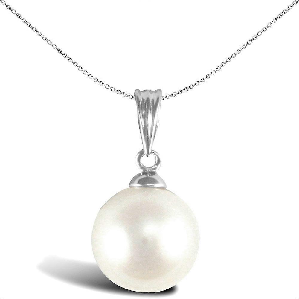 Jewelco London Ladies 9ct White Gold Seawater Cultured Akoya Pearl Full Moon Pendant 8mm
