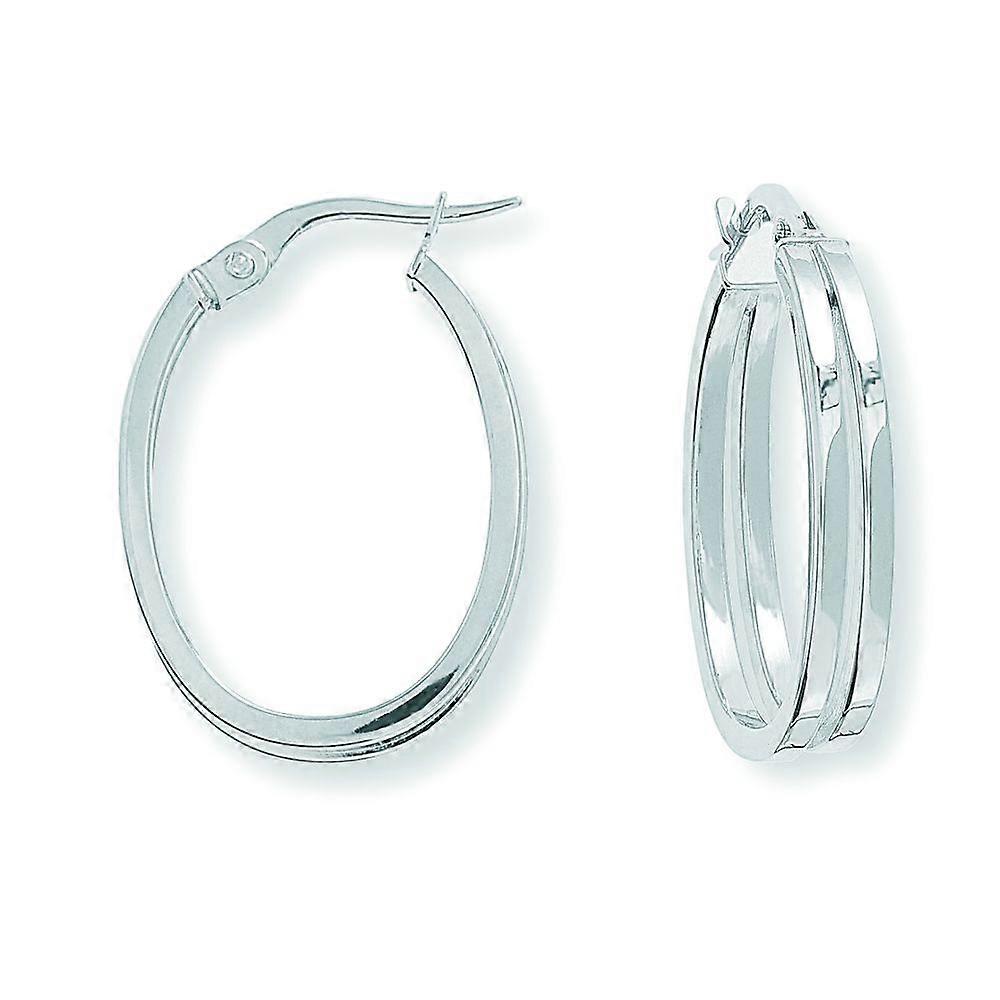 Jewelco London Ladies 9ct White Gold Split Square Tube Plain Oval Hoop Earrings 17mm x 24mm