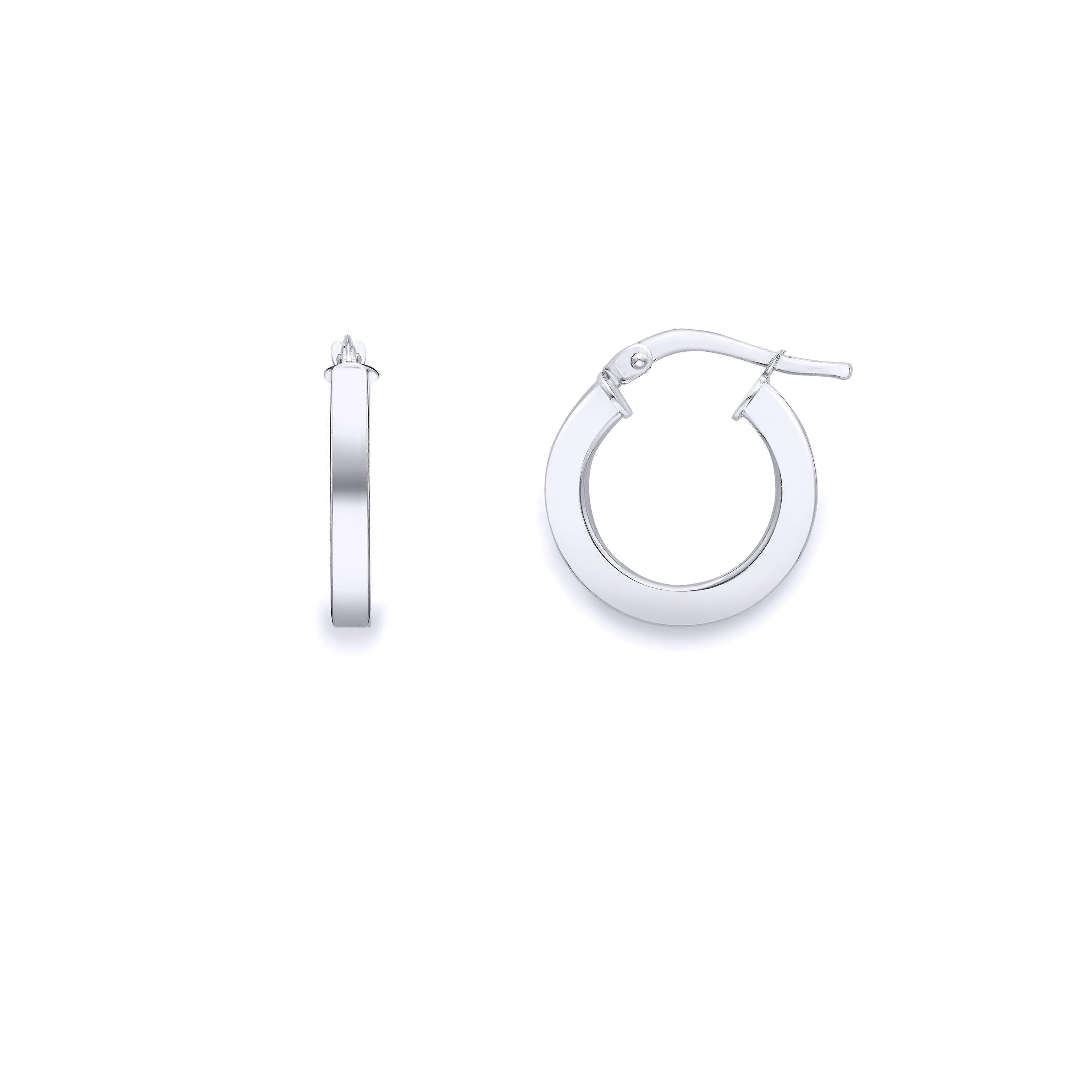 Jewelco London Ladies 9ct White Gold Square Tube Polished Round Hoop Earrings 10mm