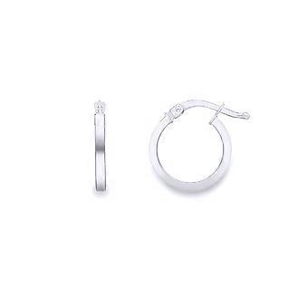 Jewelco London Ladies 9ct White Gold Square Tube Polished Round Hoop Earrings 10mm