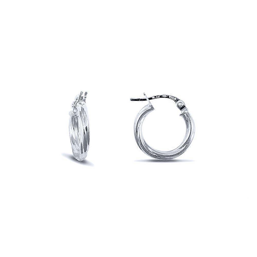 Jewelco London Ladies 9ct White Gold Twisted 2.5mm Hoop Earrings 13mm