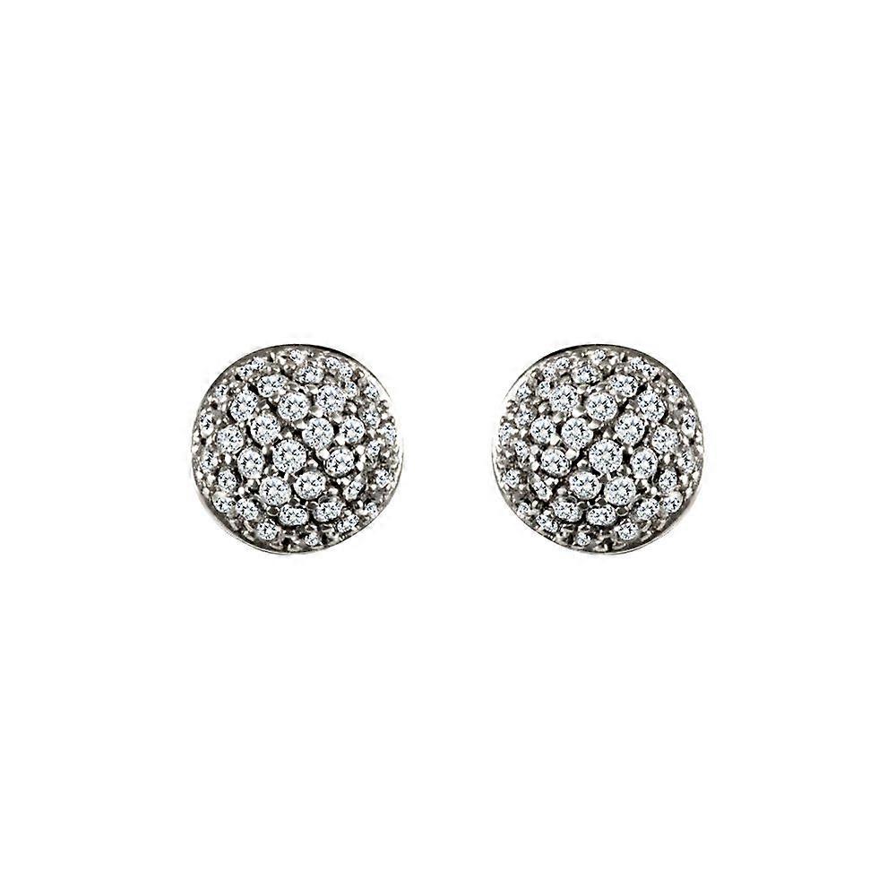 Jewelco London Ladies 9ct White Gold White Round Brilliant Cubic Zirconia Domed Pave Ball Stud Earrings