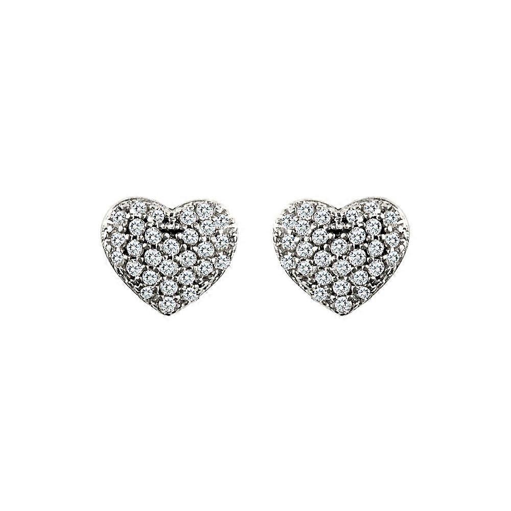 Jewelco London Ladies 9ct White Gold White Round Brilliant Cubic Zirconia Domed Pave Love Heart Stud Earrings