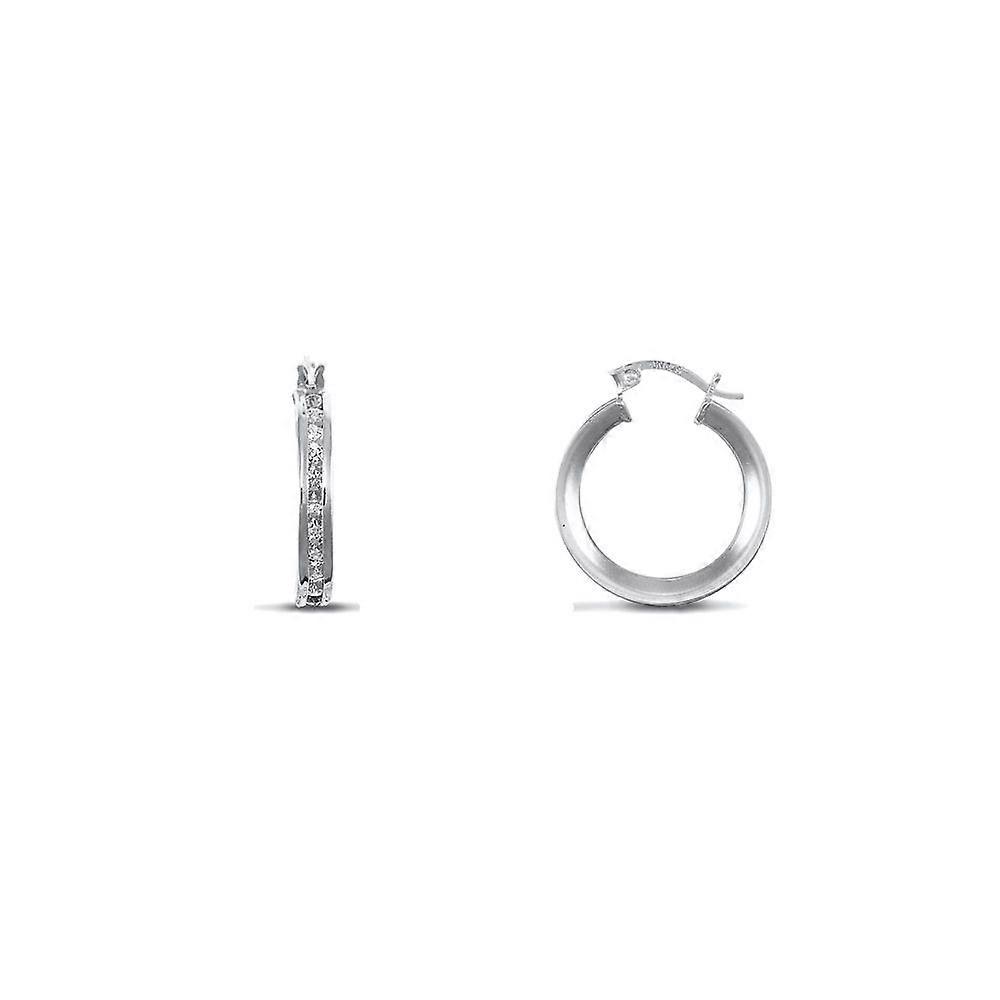 Jewelco London Ladies 9ct White Gold White Round Brilliant Cubic Zirconia Eternity 4mm Hoop Earrings 17mm