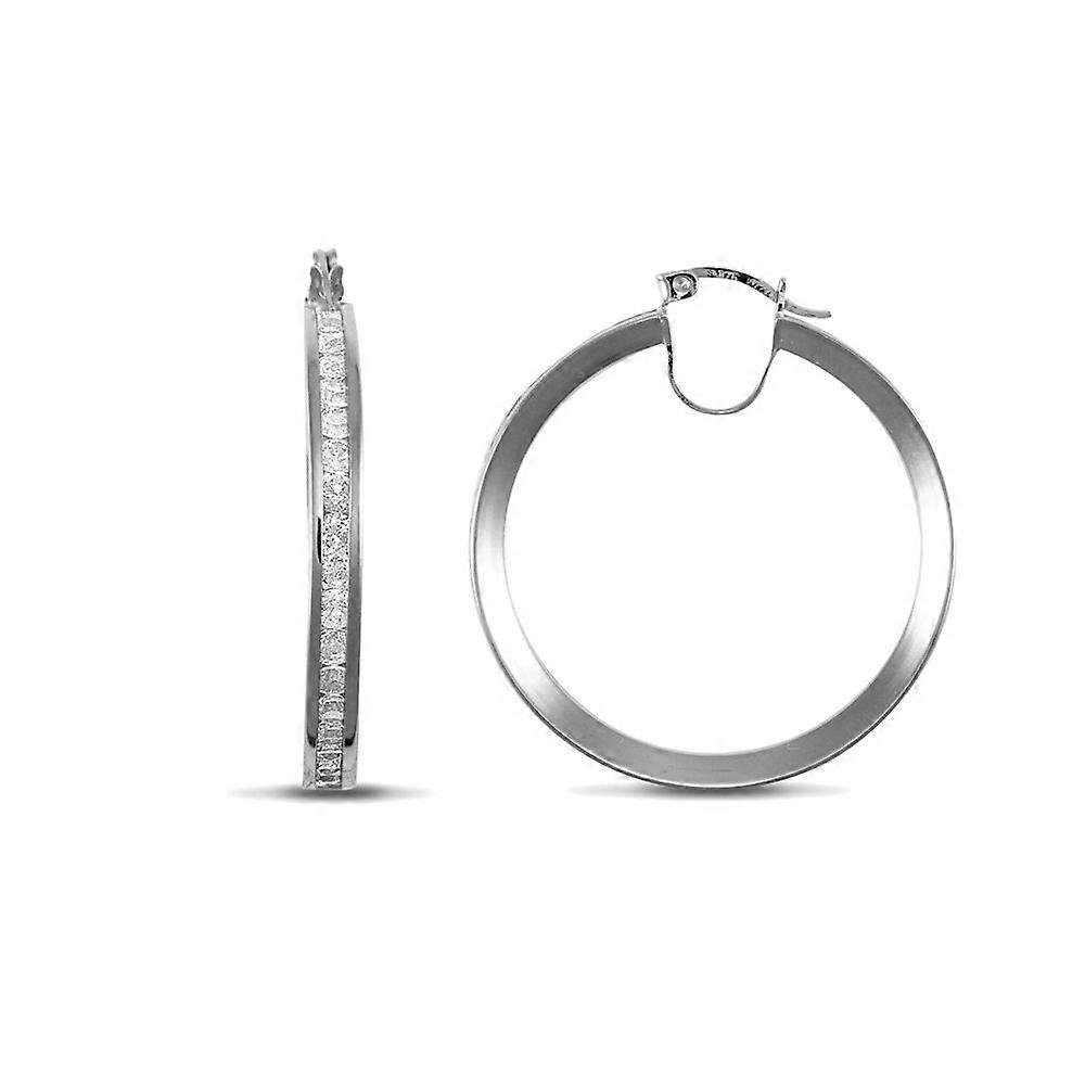 Jewelco London Ladies 9ct White Gold White Round Brilliant Cubic Zirconia Eternity 4mm Hoop Earrings 35mm